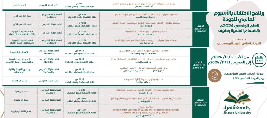 برنامج الاحتفال باليوم العالمي للجودة - الأقسام العلمية بعفيف