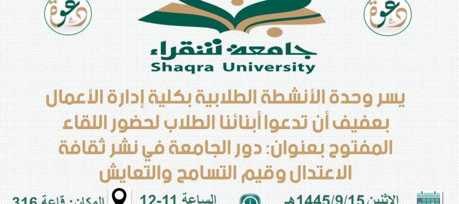 "دور الجامعة في نشر ثقافة الاعتدال وقيم التسامح والتعايش"
