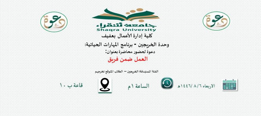 يسر وحدة الخريجين بكلية إدارة الأعمال بعفيف تتنظيم محاضرة بعنوان/ العمل ضمن فريق
