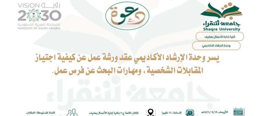 لحضور ورشة عمل عن كيفية اجتياز المقابلات الشخصية، ومهارات البحث عن فرص عمل
