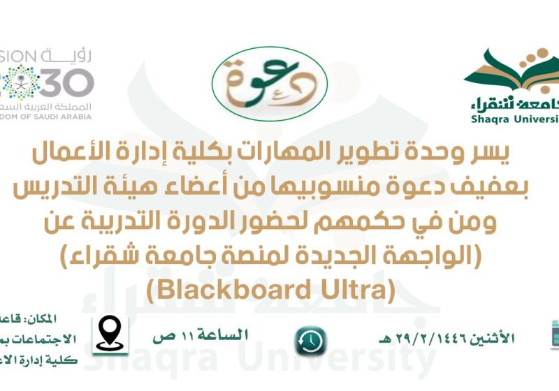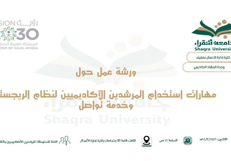 الاثنين 2 سبتمبر التعريف بمرافق الخدمات الجامعية المقدمة عن بعد والعمليات الأكاديمية الالكترونية المتوفرة على بوابة جامعة شقراء