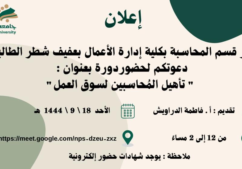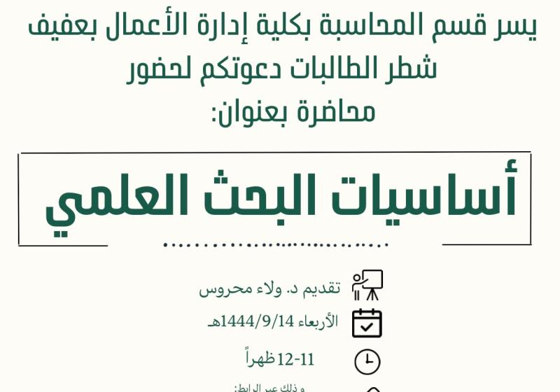 الثلاثاء 2 مايو حلقة نقاشية بقسم المحاسبة بعنوان «دور تكنولوجيا سلسلة الكتل في تحسين جودة نظام الرقابة الداخلية في الشركات المدرجة في سوق الأوراق المالية السعودي»