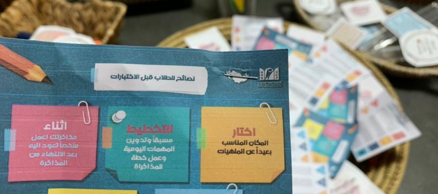 أيضاً تم توزيع مطويات شملت نصائح عن كيفية الاستعداد الجيد للاختبارات مع عبارات تحفيزية لحث الطالبات على المثابرة والاجتهاد.