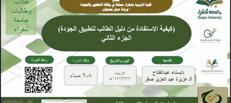مجال الجودة " نظمت وكالة التطوير والجودة بكليةالتربية بشقراء