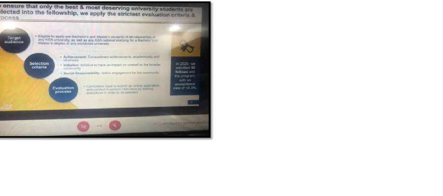 أقام النادي الطلابي بكلية الصيدلة بجامعة شقراء جلسة حوار عن بعد (اونلاين) يوم الاربعاء الموافق 21/06/1442ﮬ، بعنوان زمالة قمم للقيادات الشابة من إعداد وتقديم الطالبة نورة سلطان المقاطي خريجة زمالة قمم للقيادات الشابة و طالبة بكلية الصيدلة في جامعة شقراء وتحت اشراف رئيس النادي الطلابي سعادة الدكتور سعود المواش، وقد اشتملت جلسة الحوار على محاور عدة بدأت بالتعريف عن زمالة قمم وانتهت بآلية التقديم على البرنامج ولقد قامت الطالبة نورة سلطان بنقل تجربتها من جميع الجوانب في زمالة قمم لزملائها وزميلاتها من طلاب وطالبات كلية الصيدلة وبحضور مجموعة من زملائهم من كلية العلوم والدراسات الإنسانية وكان عدد الحضور أكثر من ٣٠طالب وطالبة، و الجدير بالذكر أن زمالة قمم للقيادات الشابة تهدف إلى البحث عن طلاب وطالبات الجامعات السعودية الواعدين والأكثر تميزًا وتمكينهم و تطويرهم لتحقيق طموحاتهم المهنية،