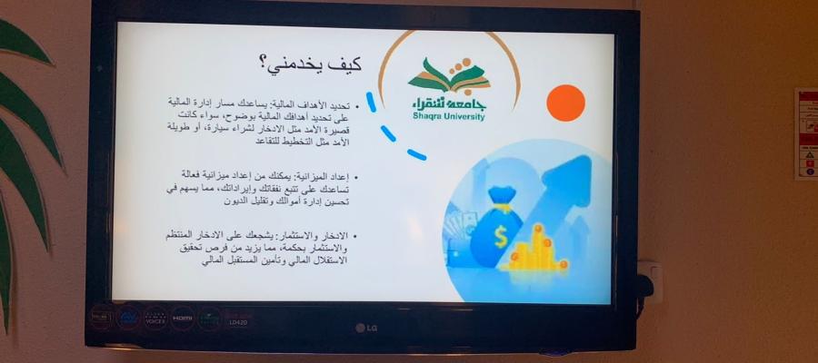 أقيم تحت إشراف وحدة الأنشطة الطلابية بالأقسام العلمية بثادق شطر الطالبات نشاط بعنوان (تخصصي في خدمتك) وذلك يوم الأربعاء الموافق ٦ / ٤ / ۱٤٤٦ هـ وبالتنسيق مع منسقة الأنشطة الطلابية بالكلية الأستاذة أريج بريك سباع، تم عرض عمل إحدى الطالبات "بوربوينت" عن تخصص الإدارة المالية ووضحت أهم الصور لكيفية الاستفادة من هذا التخصص لحياة الفرد في الحياة اليوميةوالمستقبلية وتم توزيع توزيعات من عمل إحدى الطالبات، وفي الختام ابدت الطالبات رضاهن واستفادتهن بالموضوع المقدم لما له من أهمية في المستقبل. |