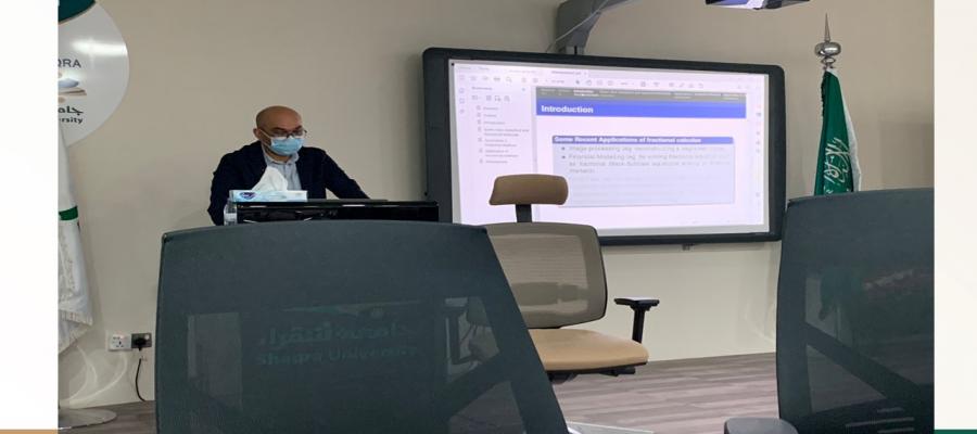 وذلك في تمام الساعة الواحدة من يوم الأربعاء الموافق ١٥ رجب ١٤٤٣ تفضل مشكوراً بتقديم الندوة سعادة الدكتور/ خالد يوسف معدي الأستاذ المشارك بالقسم ، قبل البدئ بموضوع الحلقة عرج الدكتور خالد حول مؤتمر البحث العلمي الأول بالجامعة و تناول بشكل سلس وبسيط أهمية النقاط التي تطرق لها المؤتمر ومنها برامج دعم البحوث العلمية في الجامعة، بعد ذلك تم طرح موضوع الحلقة الموجهة لأعضاء هيئة التدريس التي تم فيها شرح مفهوم   Fractional differential equations and their order. Additionally, Prof. Khalid spoke about different types of method for solving Differential Equations of Fractional Order.