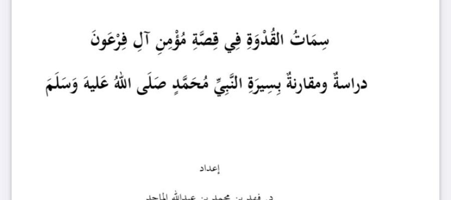 ومن القصص القرآني: قصة مؤمن آل فرعون في سورة غافر، وذكر الدكتور تمهيدا يشمل التعريف بمعنى القدوة في اللغة والاصطلاح القرآني، وتعريفاً موجزاً بمؤمن آل فرعون.