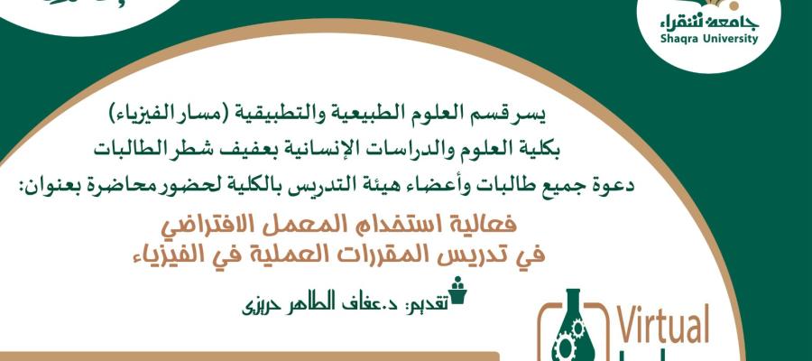 هدفت المحاضرة الى تعريف الطالبات بالمختبرات الافتراضية وأنواعها وأيضا محتوياتها كما تم التطرق لشرح خفيف عن كيفية استخدام المعامل الافتراضية في الفيزياء والاستفادة منها في التدريس أيضا تم تحديد مميزات المعامل الافتراضية واهميتها في العصر الحالي .