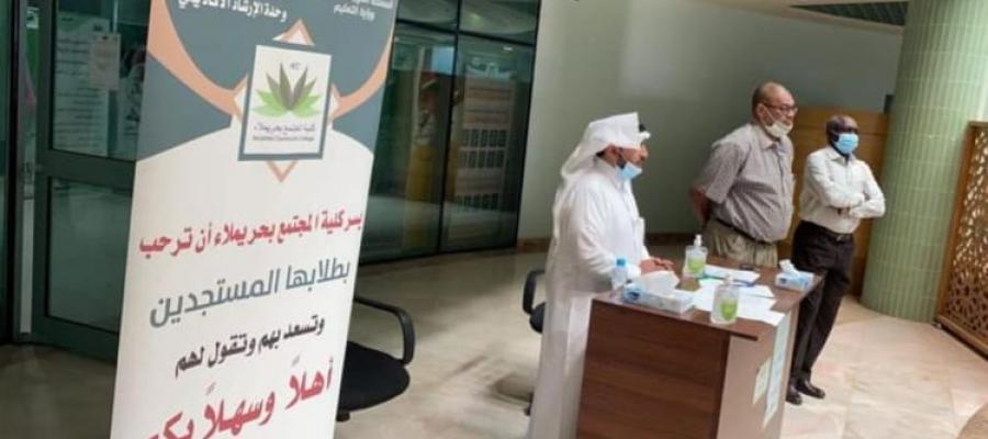 رعى سعادة عميد كلية المجتمع بحريملاء الدكتور حالد بن عمير الذيابي يوم الاحد الموافق 21/01/1443هـ حفل استقبال الطلاب المستجدين بالكلية وفق الاجراءات الاحترازية، الذي نظمته ادارة الكلية وذلك بحضور وكلاء الكلية واعضاء هيئة التدريس.