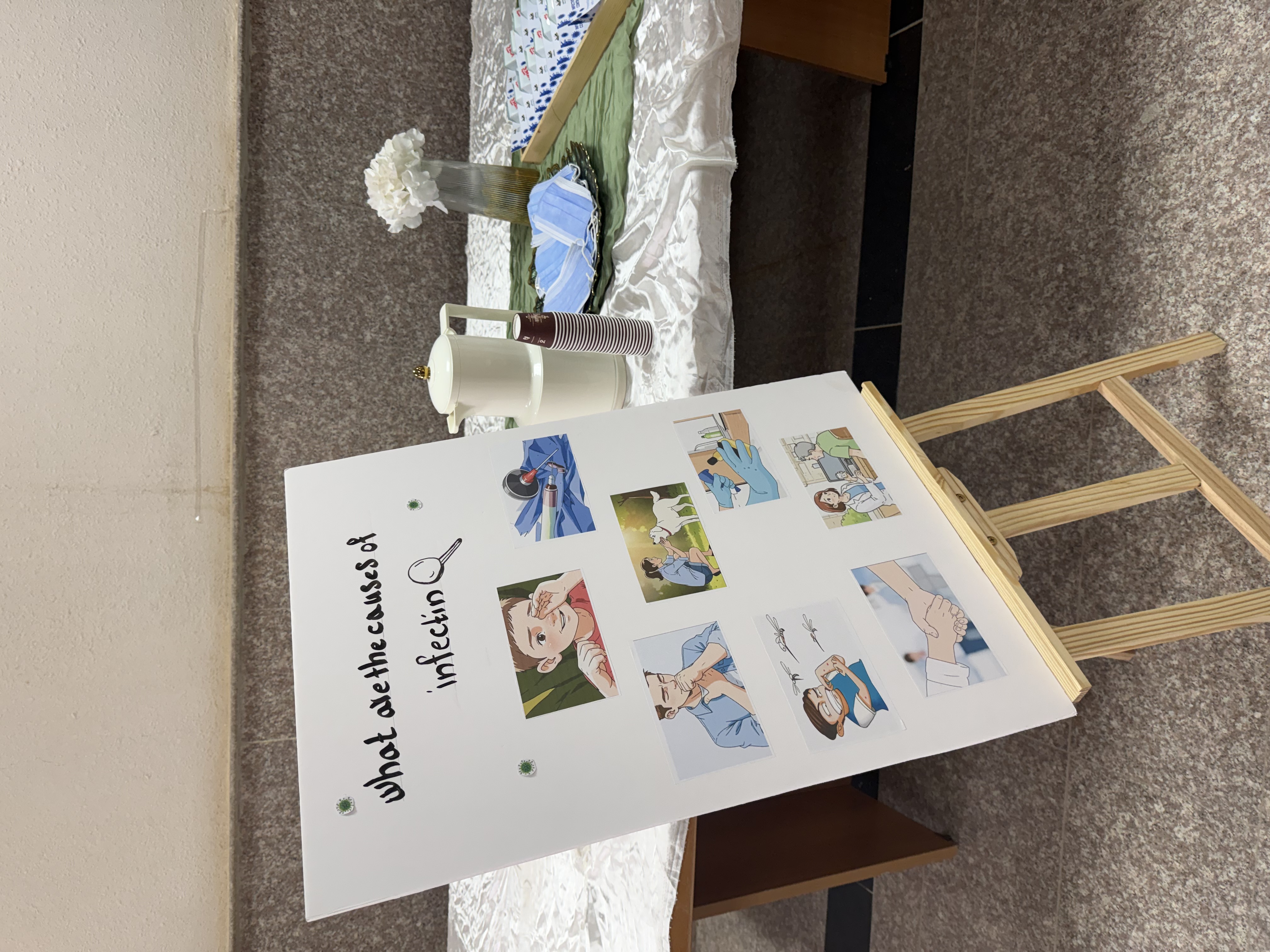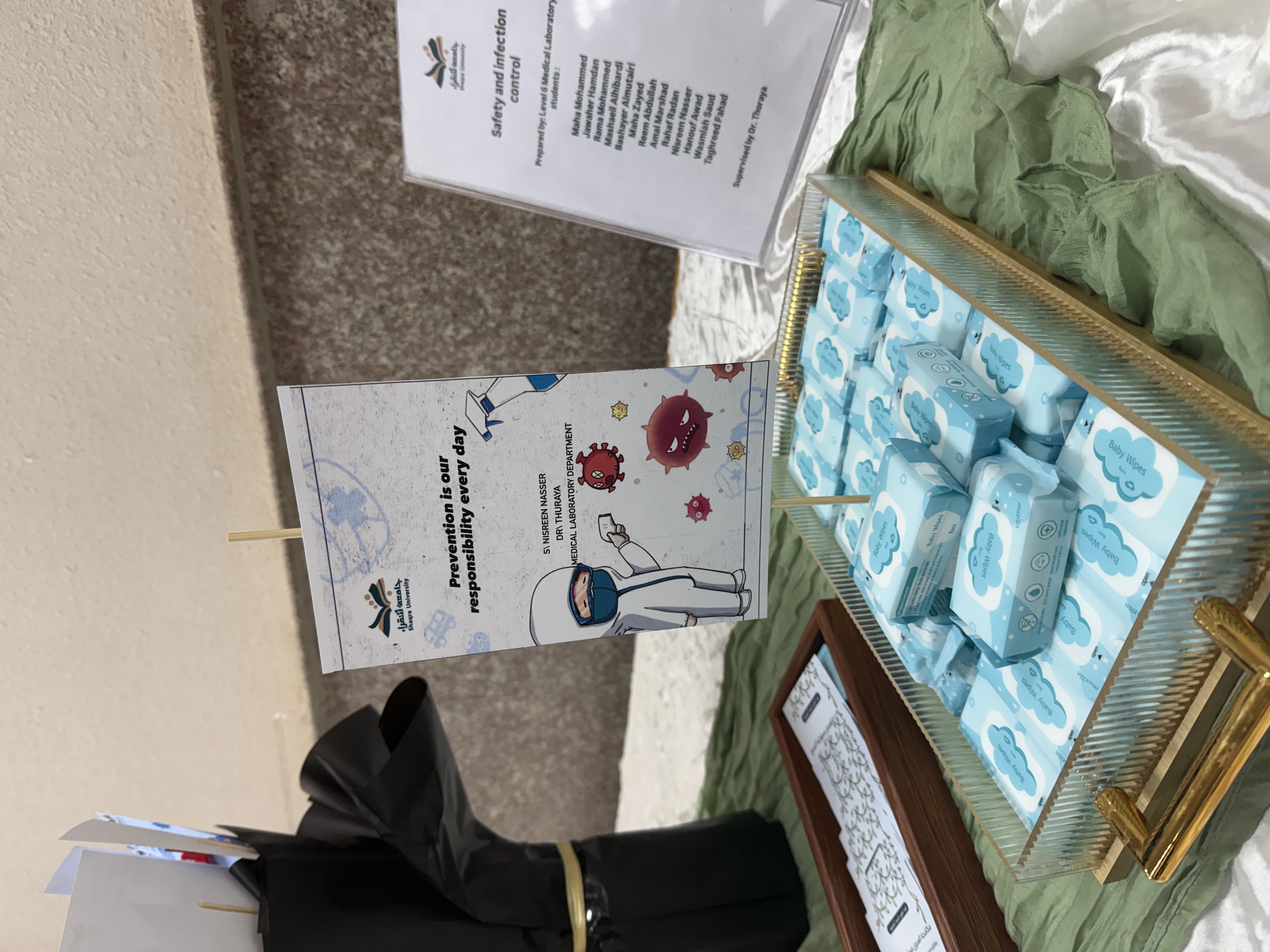 كذلك تضمنت الفعالية ركن احتوى على لوحات تعريفية للوقاية من انتشار العدوى ، و مطويات توعوية ونصائح عن الأمراض الشائعة التي تسببها العدوى البكتيرية والعدوى الفيروسية.