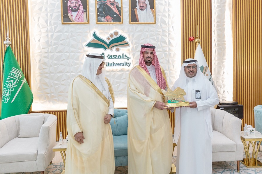 كما تضمن العرض التعريفي ما حققته الجامعة من إنجازات في مجال البحث العلمي ودعم برامجه ومشروعاته النوعية، وكذلك المبادرات المنفذة في مجال الصحة والتوعية والقانون، وأهم وأبرز البرامج التدريبية التي تنفذها الجامعة خلال الفترة الماضية، بالإضافة إلى برامجها وأنشطتها في خدمة المجتمع، وما حققه طلاب وطالبات الجامعة من مراكز متقدمة في مسابقات صحية وتقنية ورياضية، واختتمت الزيارة بالوقوف على معرض مشروعات الجامعة، والذي تضمن استعراضًا لأهم المشاريع القائمة.