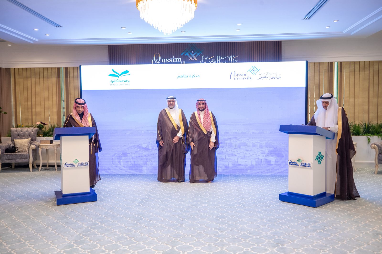 شهد رئيس جامعة شقراء الأستاذ الدكتور علي بن محمد السيف، وسعادة رئيس جامعة القصيم الأستاذ الدكتور محمد بن فهد الشارخ، توقيع مذكرة تفاهم بين كلية الطب بشقراء، والمدينة الطبية بجامعة القصيم، وذلك لتعزيز التعاون الأكاديمي والطبي، بين الجامعتين.