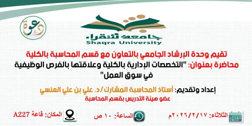 FebruaryThe College of Business Administration was established in Afif in 1432H with the aim of being a pioneer in education, scientific research, community service and striving to achieve global leadership in the framework of the great efforts of Shakra University.