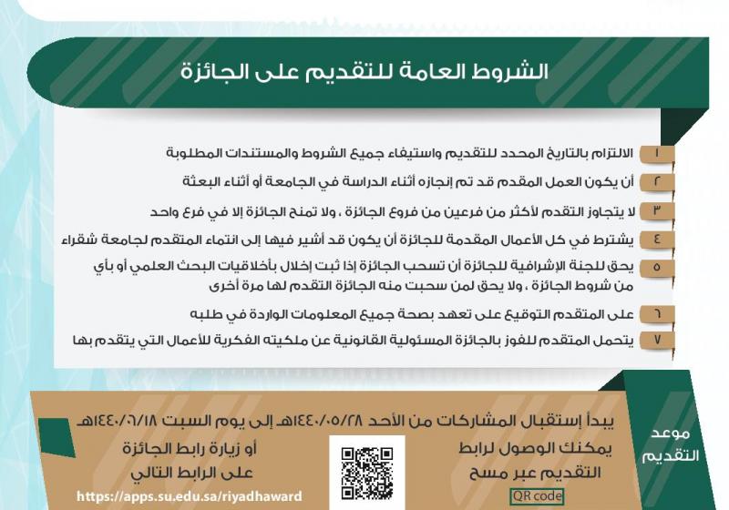 Monday 24 October World Energy Day Monday 22 April Call for Application: Shaqra University's Curricula and Teaching Methods MA Program Sunday 7 April Prince of Riyadh Award for Excellence Wednesday 27 March Scientific Research Support Program