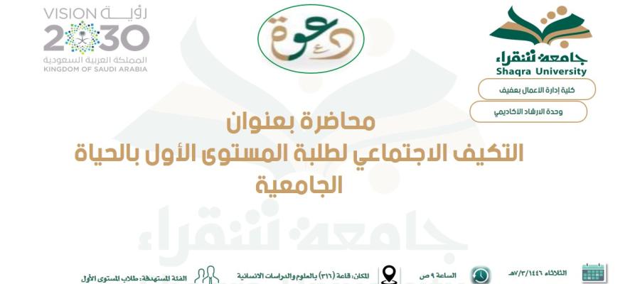 يسر وحدة الإرشاد الأكاديمي بكلية إدارة الأعمال دعوة طلاب المستوى الأول لحضور محاضرة بعنوان